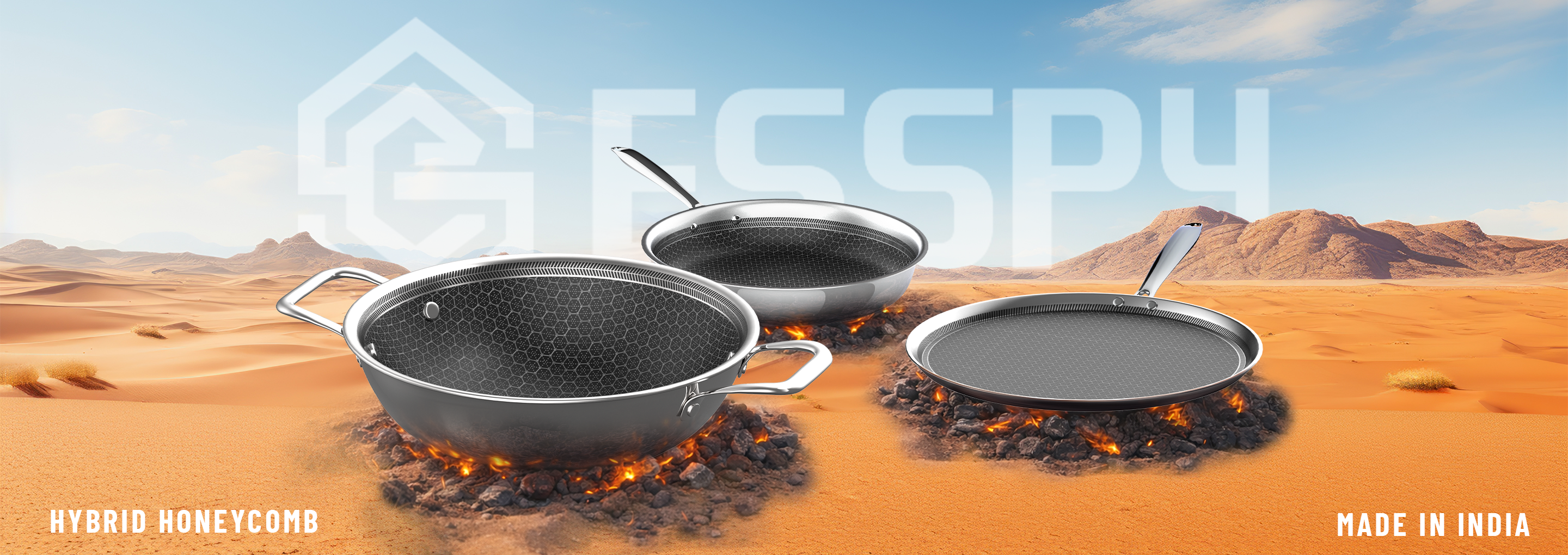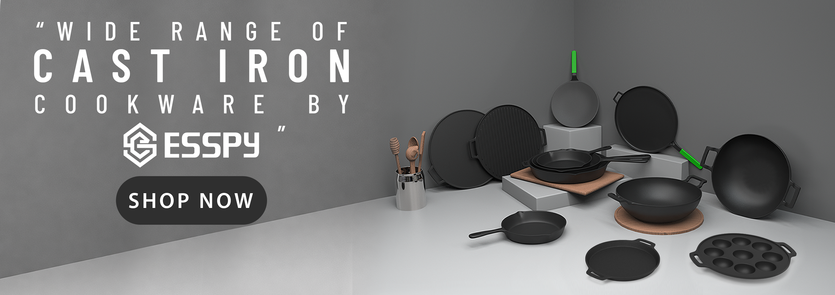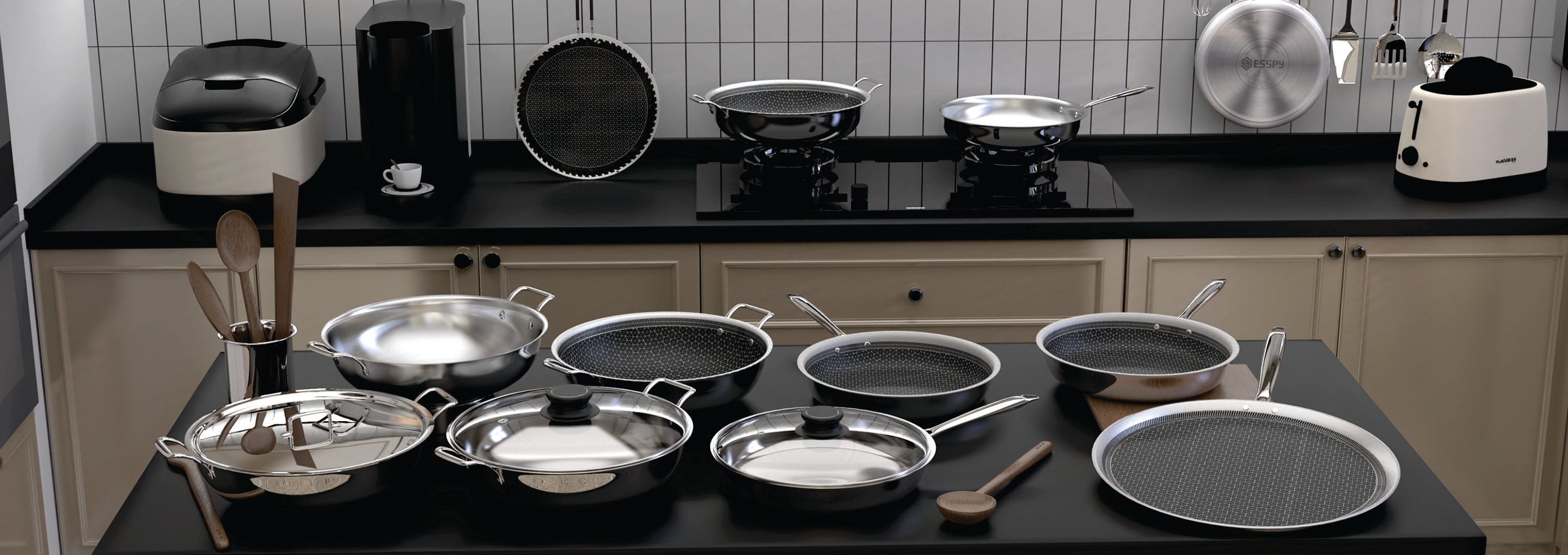 You can find cast iron cookware, tri-ply stainless steel cookware, honeycomb tri-ply cookware, stainless steel cookware, cookware sets, and accessories in various categories like tawa, kadai, fry pans, grill pans, and more.