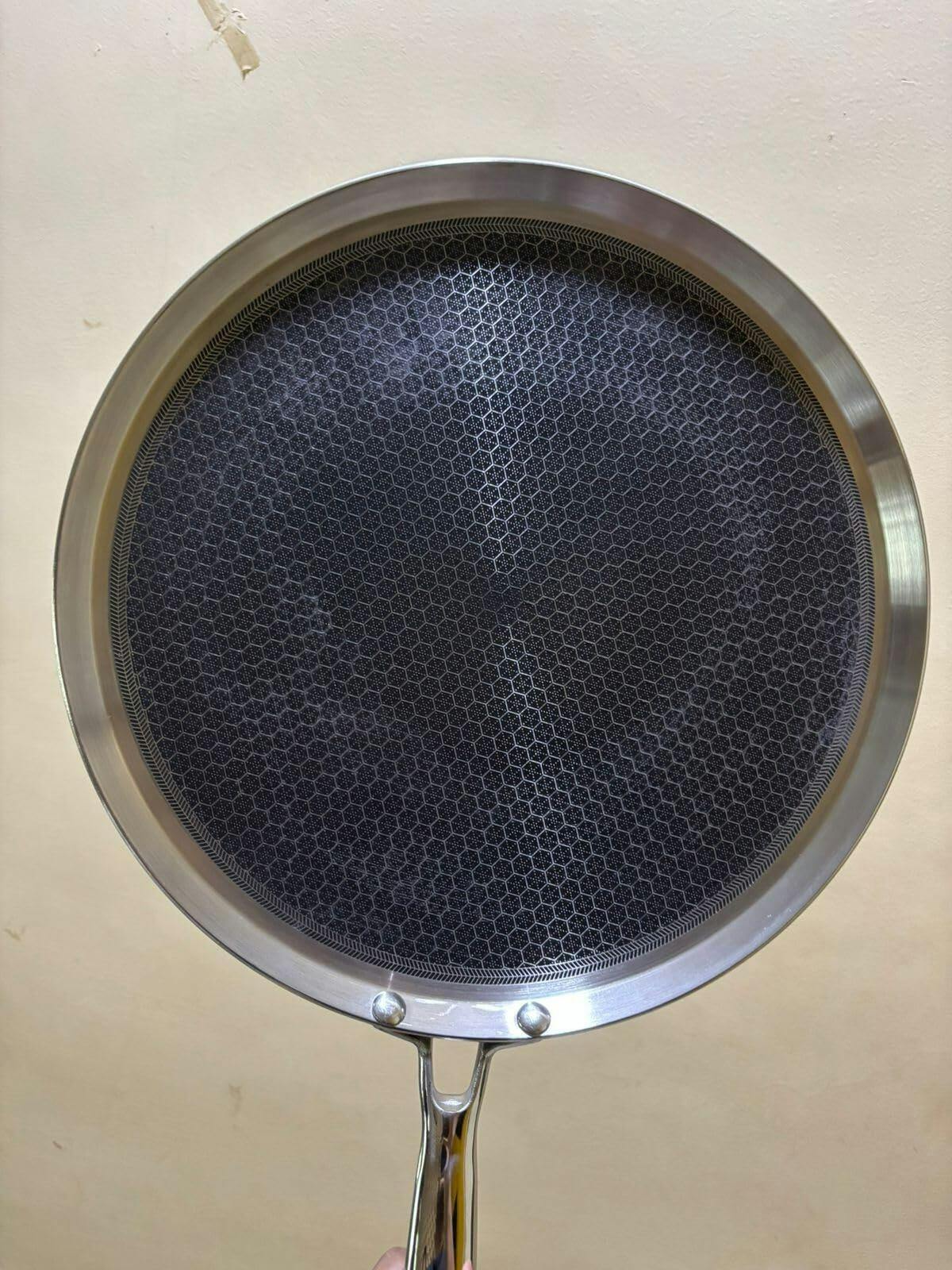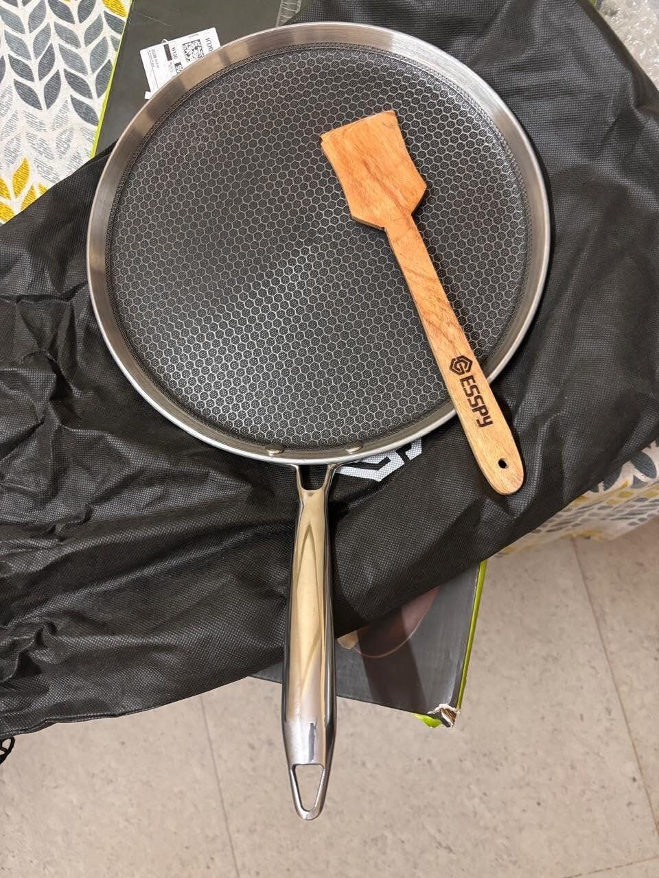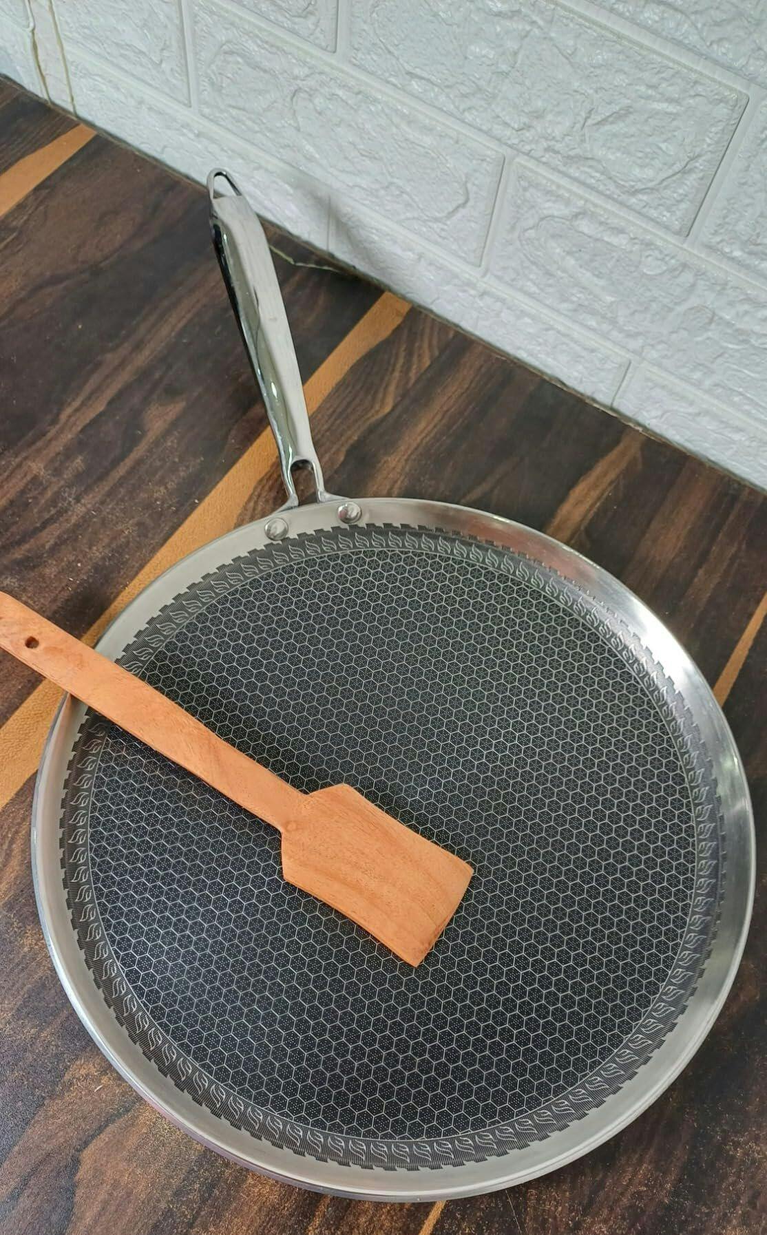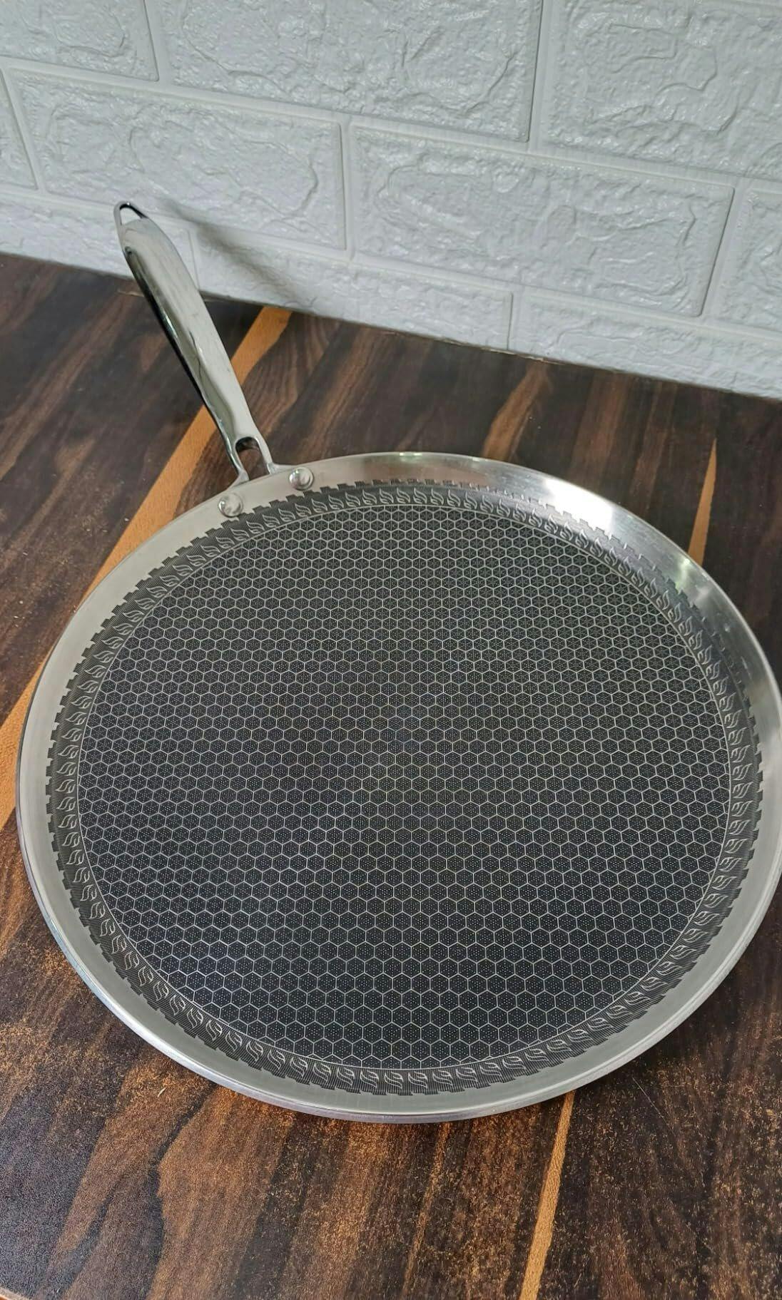 Esspy Honeycomb Triply Non Stick Dosa Tawa | Stainless Steel Tawa for Dosa | Tawa for Roti/Chapati/Paratha | Metal Spatula Friendly, 4.0 mm Thick, Honeycomb Pattern, Riveted Handle, Food Safe