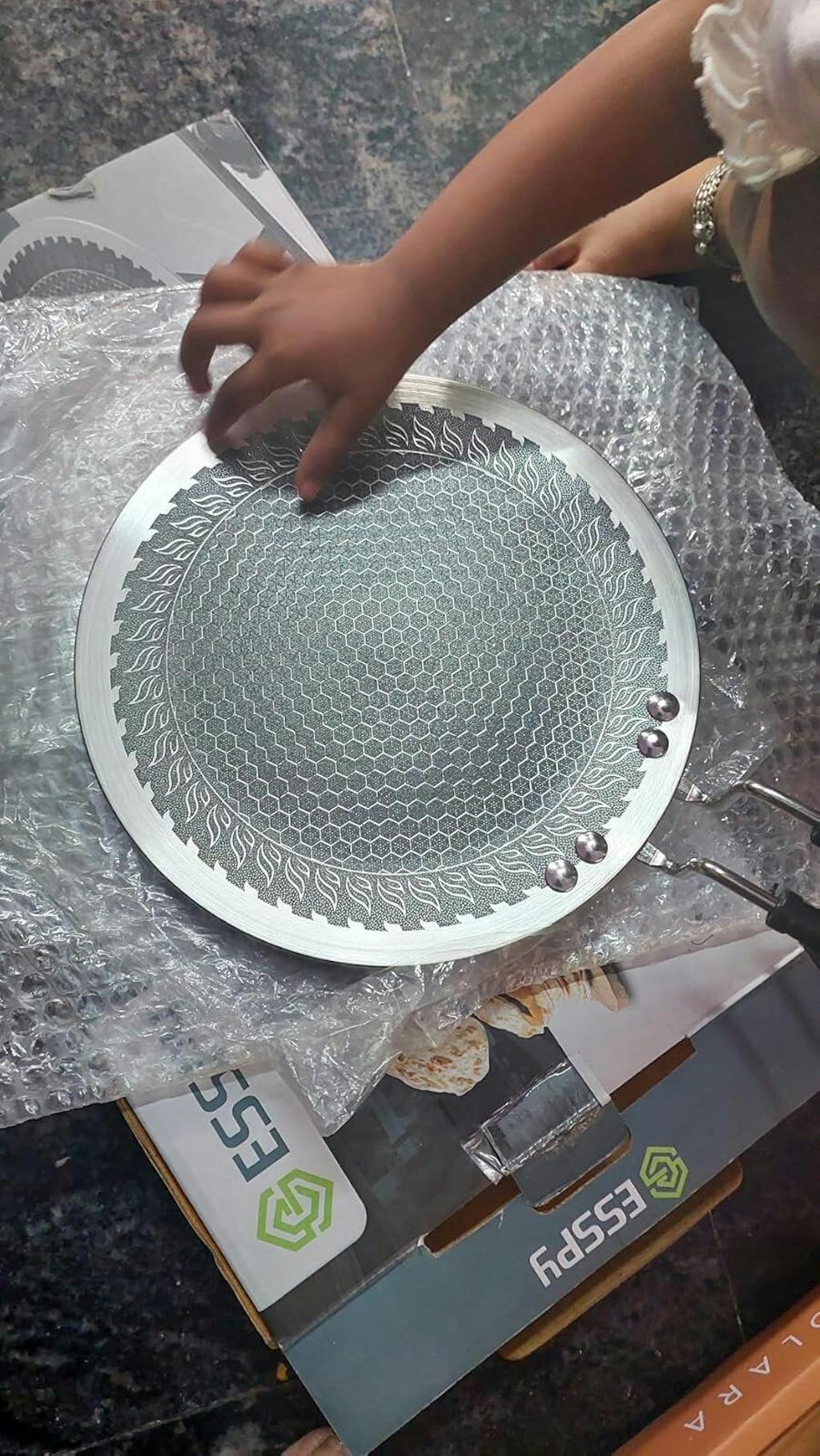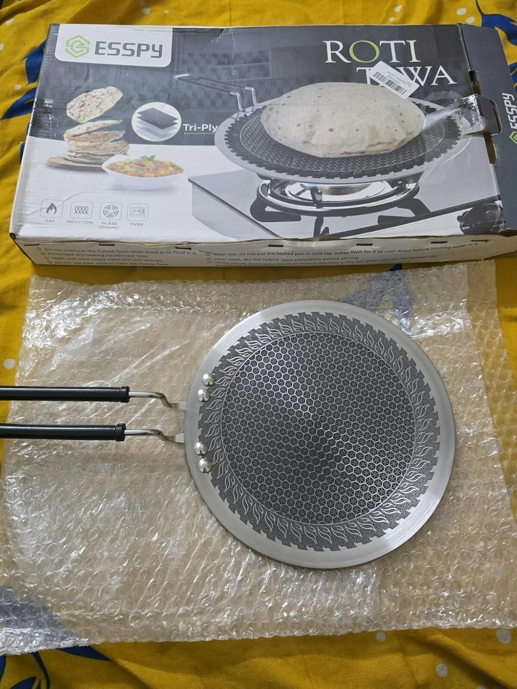 Esspy Triply Stainless Steel Tawa for Roti and Dosa, Chapati Tawa, Induction & Gas Compatible, Metal Utensil Safe, Ergonomically Designed Handles, Honeycomb Pattern